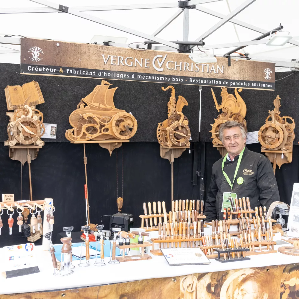 Christian Vergne crée des horloges entièrement en bois corrézien, y compris le mécanisme, alliant savoir-faire artisanal et matériaux locaux.